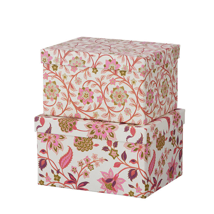 Set of two decorative storage boxes in beautiful red shades. Our handmade boxes are crafted from cotton paper, giving them a luxurious and elegant finish. Perfect as gift boxes, for storing Christmas decorations, or as toy storage in the kid's room. The handmade paper is made from recycled cotton waste from the textile industry and is both wood-free and azo-free.