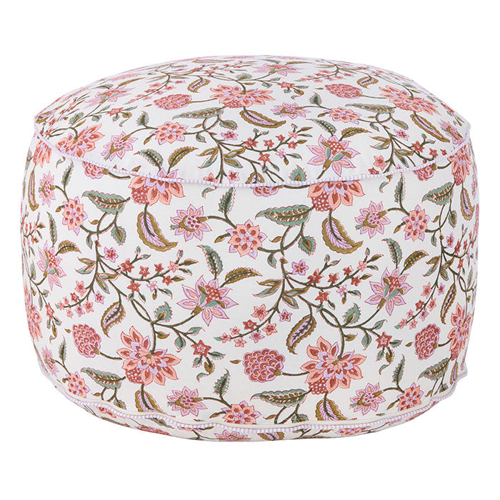 Charming pouf with handcrafted block print, 100% cotton cover (including poly-foam ball filling).