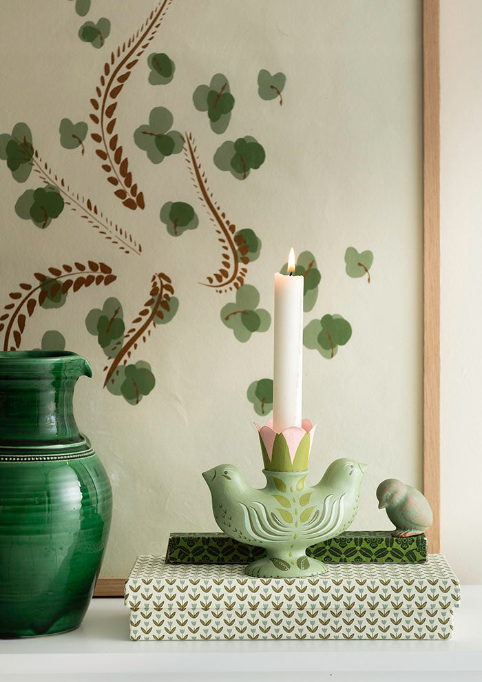 Candle Holder H12cm Twin Birds Fern