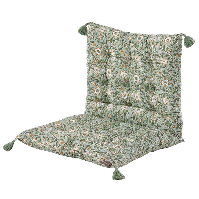 Soft and exclusive seat cushion featuring handmade block print, 100% cotton cover.