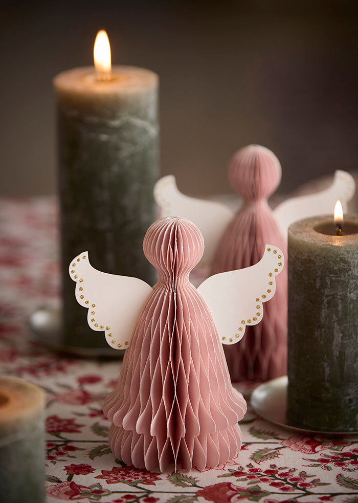 The paper ornament unfold and are secured with a magnet in the center. When done using them, simply fold them back up and store them easily for next season. They are made to last year after year.