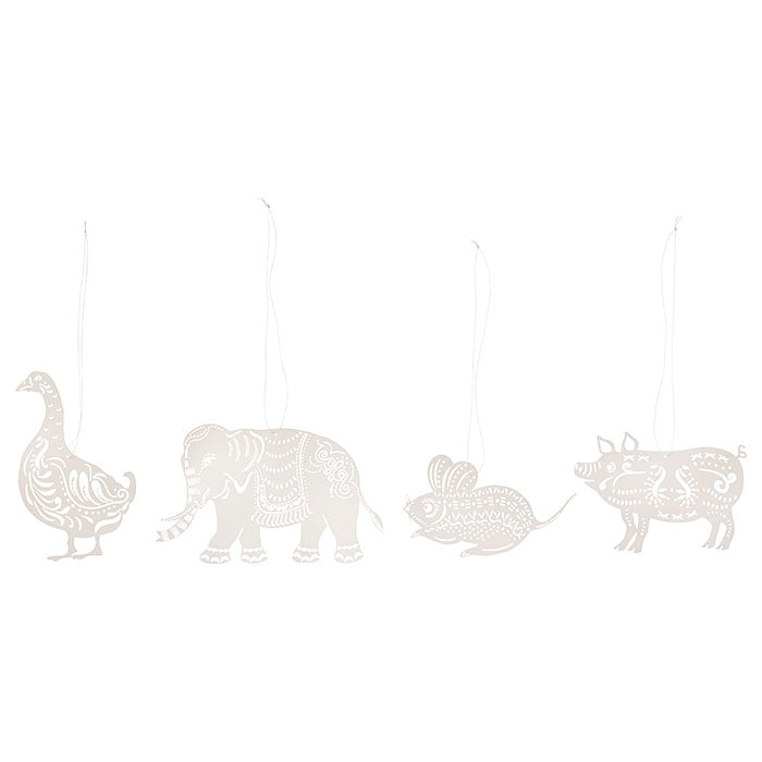 Paper Ornaments Animals 4-10cm Off White S/4pcs