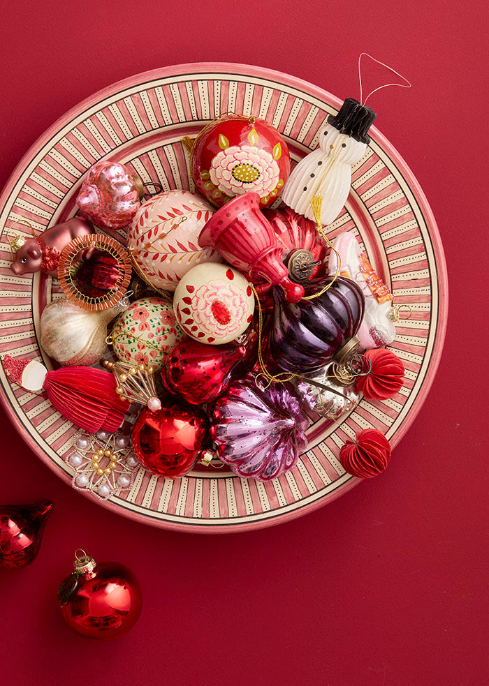 Each of our beautiful papier-mâché ornaments is hand-painted in India, giving every piece its own unique character and charm. These beautiful ornaments come carefully packed in a lovely gift box - perfect for gifting or storing year after year.