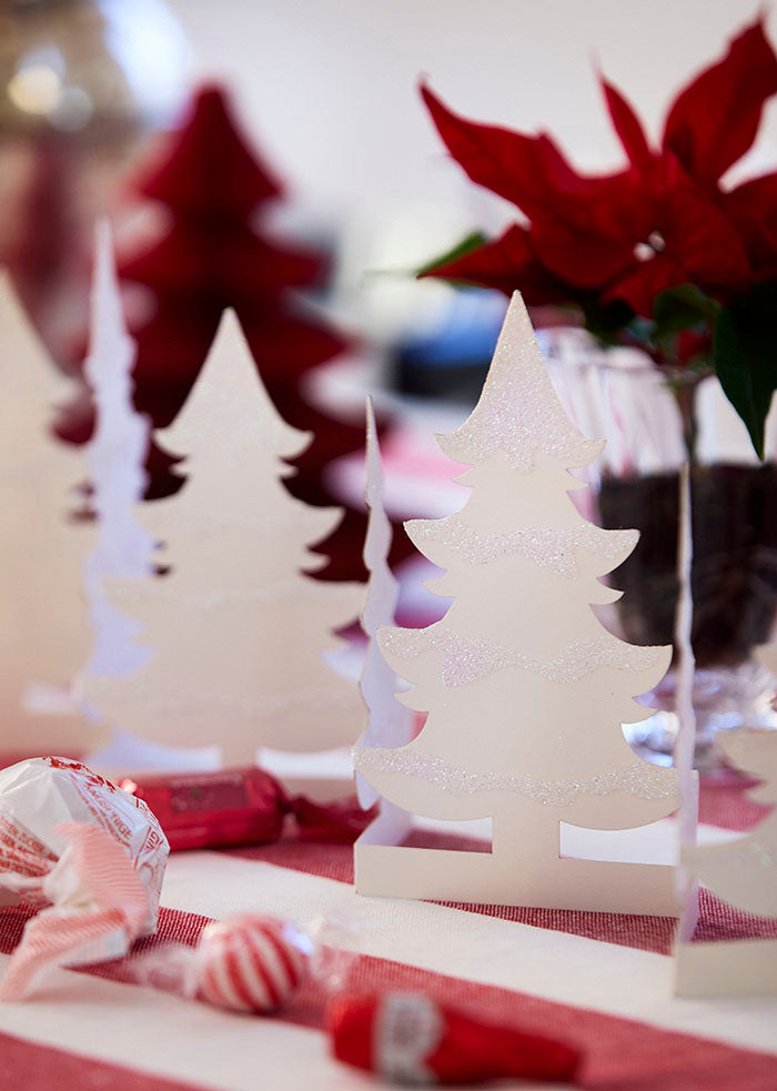 Charming table garland with tree design, intricate cut-out and glitter details.